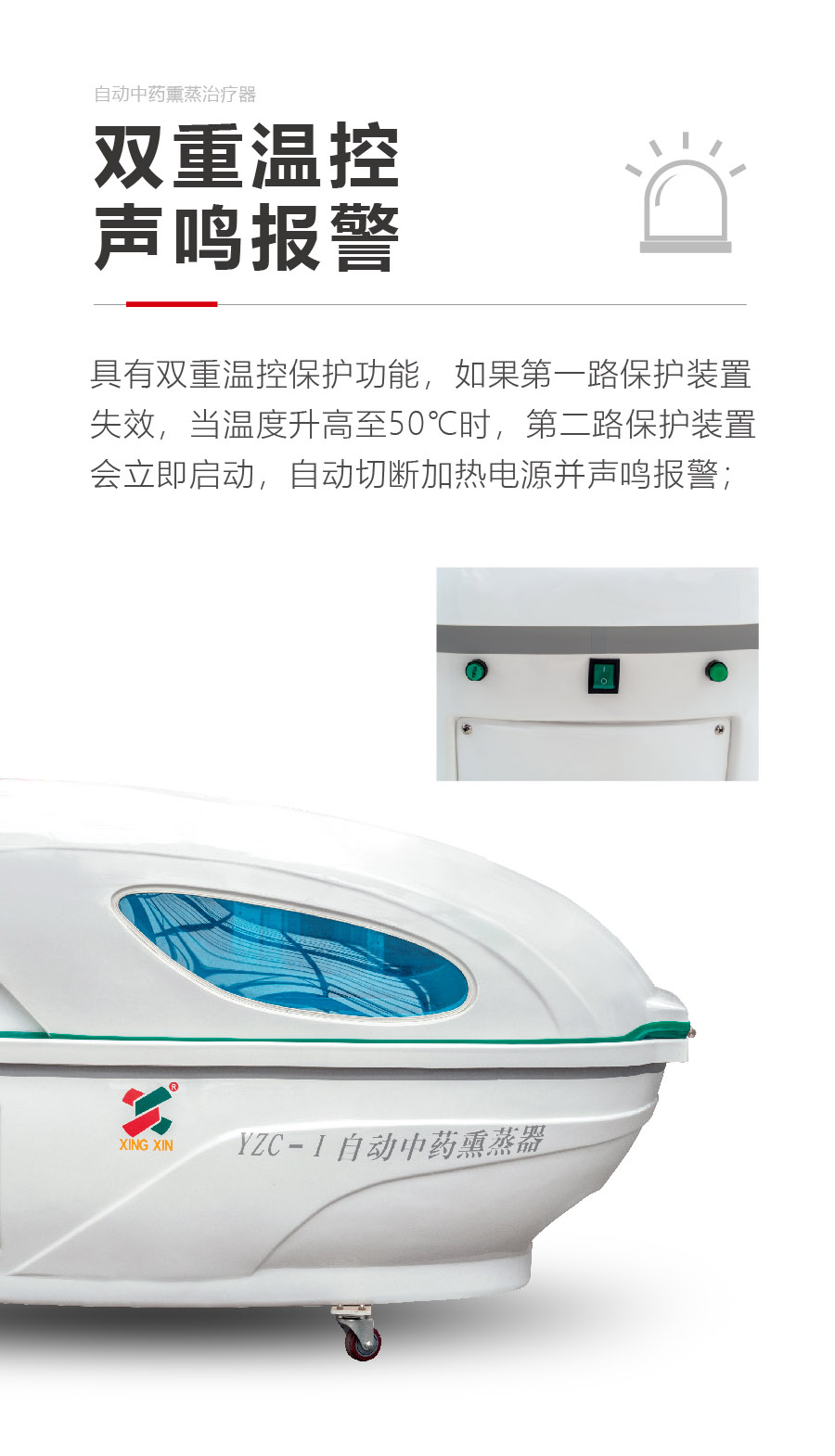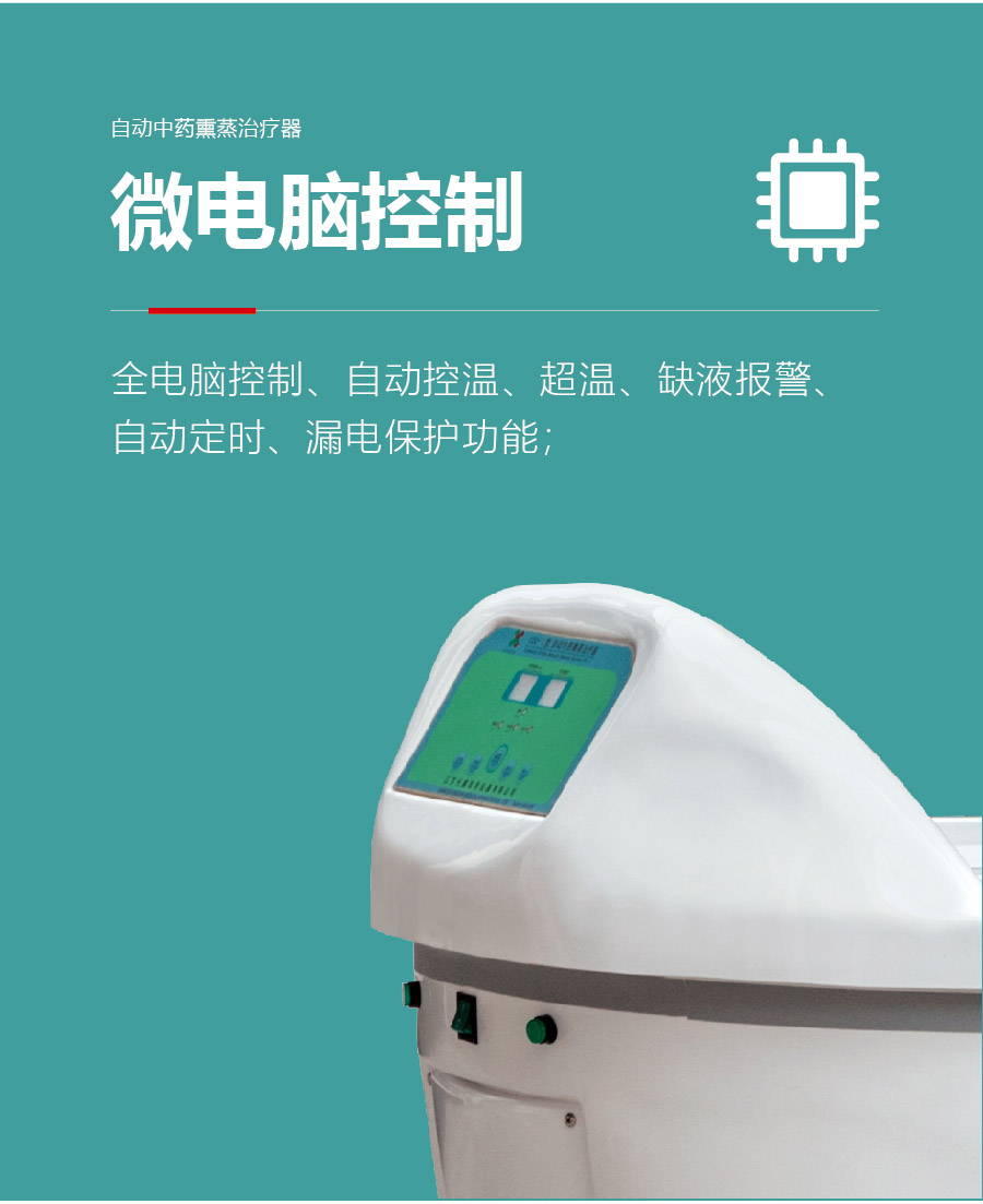 該新款產品集流行造型、中藥熏蒸、足浴養生、紅外理療、視聽等功能于一體,有著一機多用的特點。采用大屏液晶顯示,輕觸按鍵,操作簡單,功能齊全,是一般醫療單位中藥熏蒸類的適用產品。