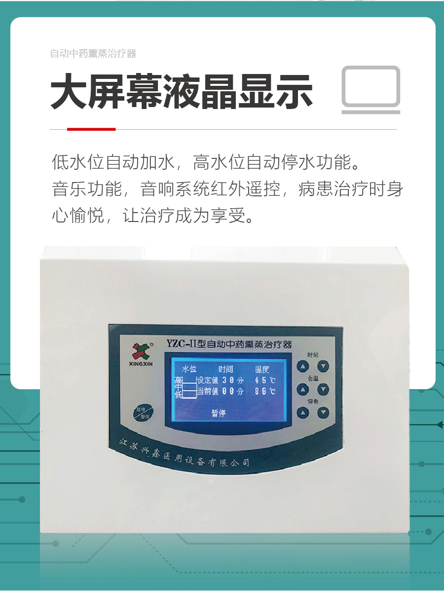 產品詳情YZC-II型自動中藥熏蒸治療器分電磁壓力鍋和不銹鋼藥箱電熱兩種溫控系統加熱方式。(電磁壓力鍋方式適用于用戶無地漏環境的使用布置,不銹鋼藥箱電熱方式適用于用戶有......